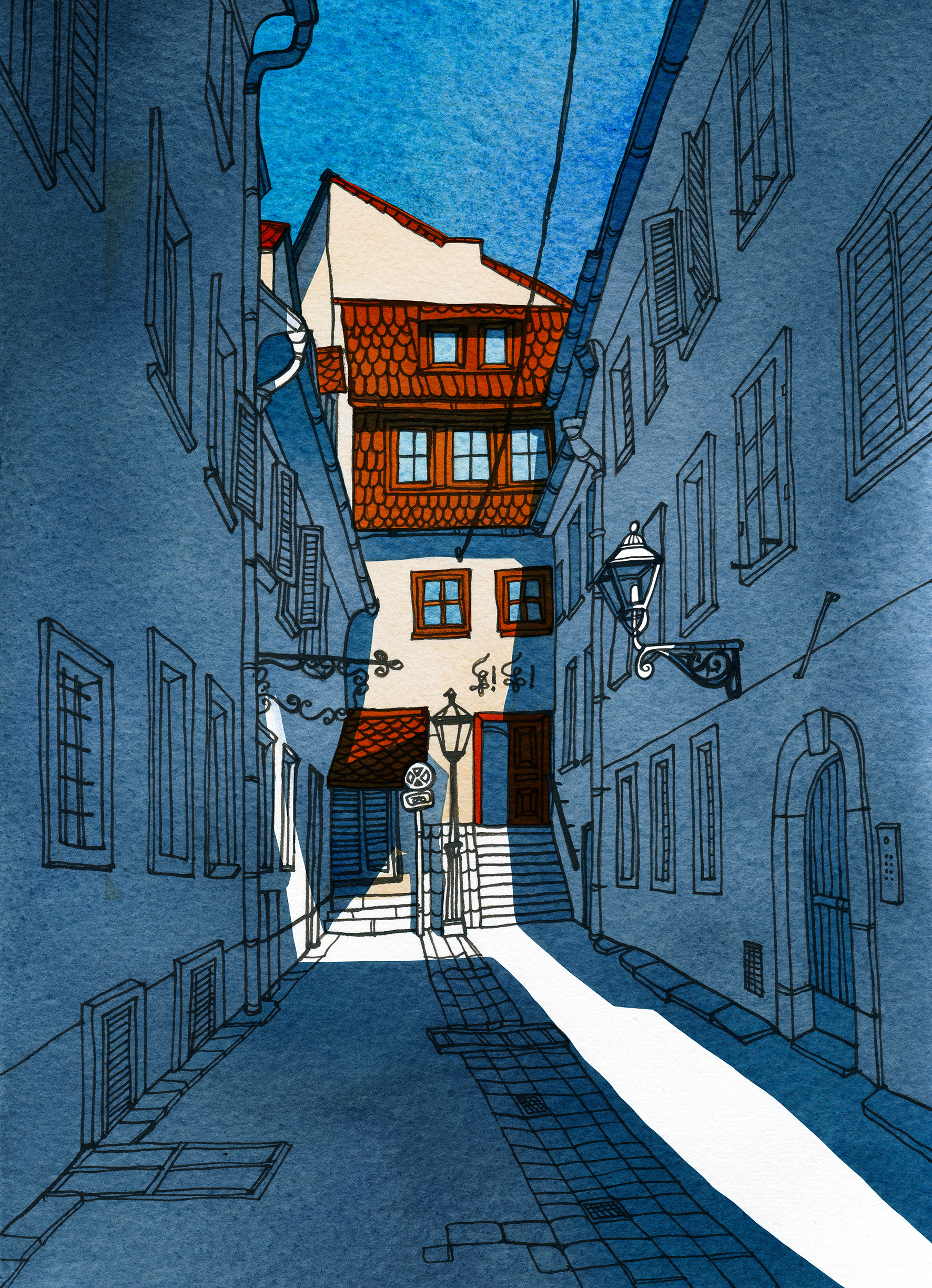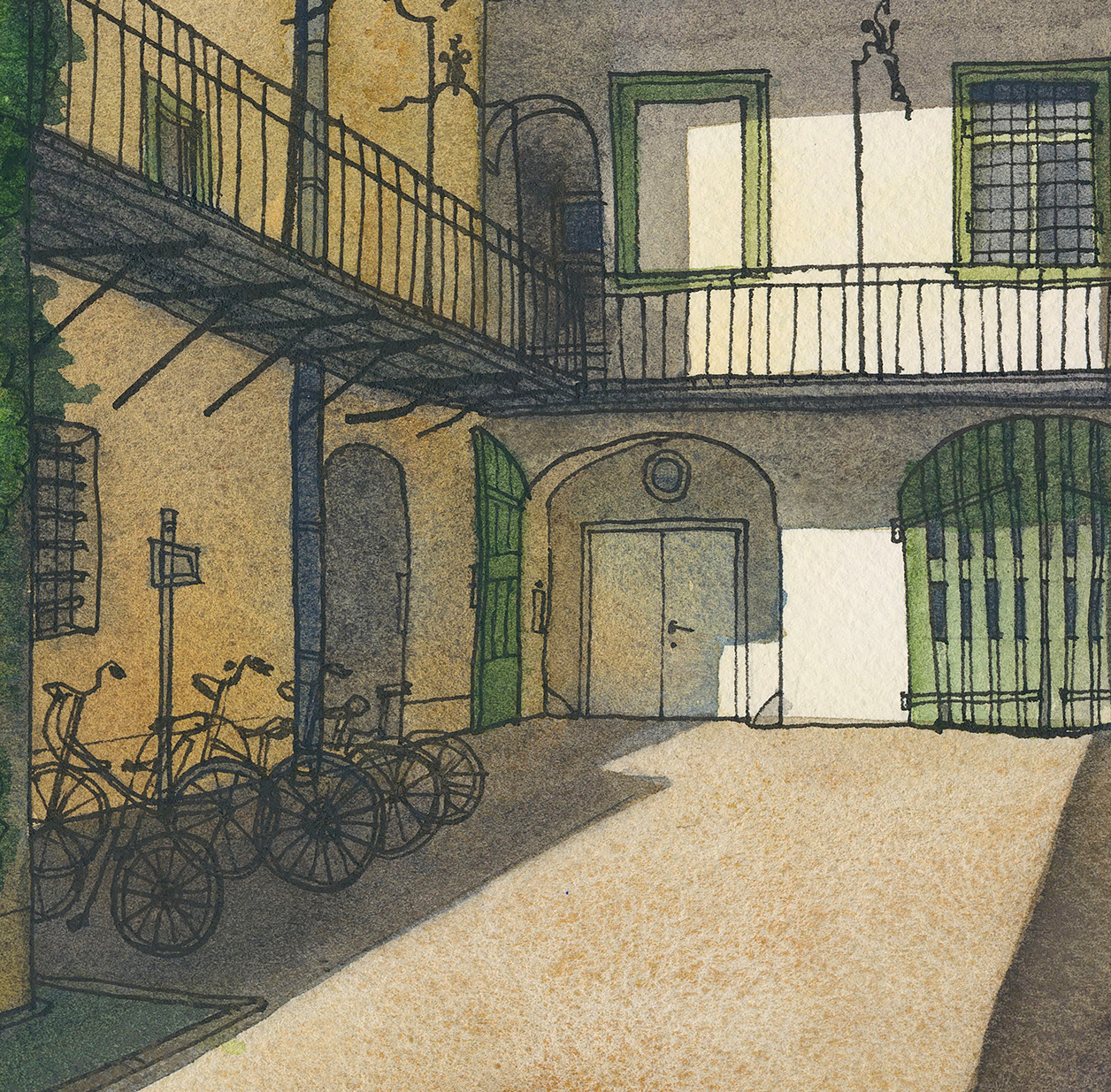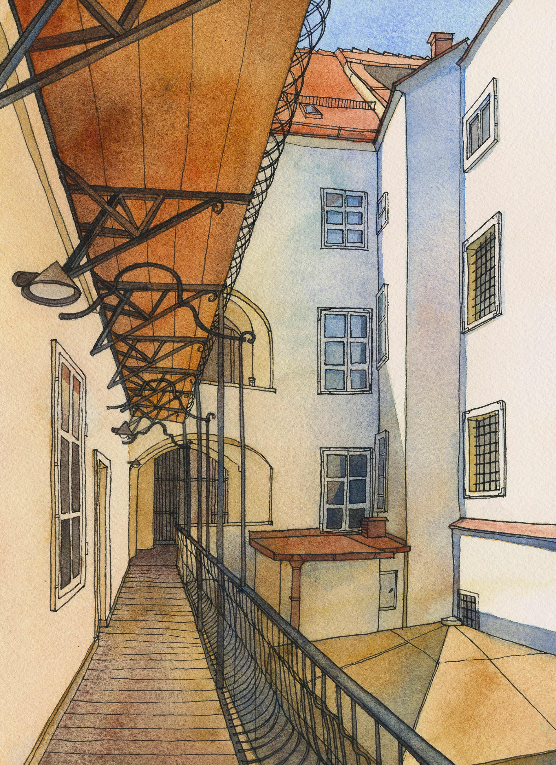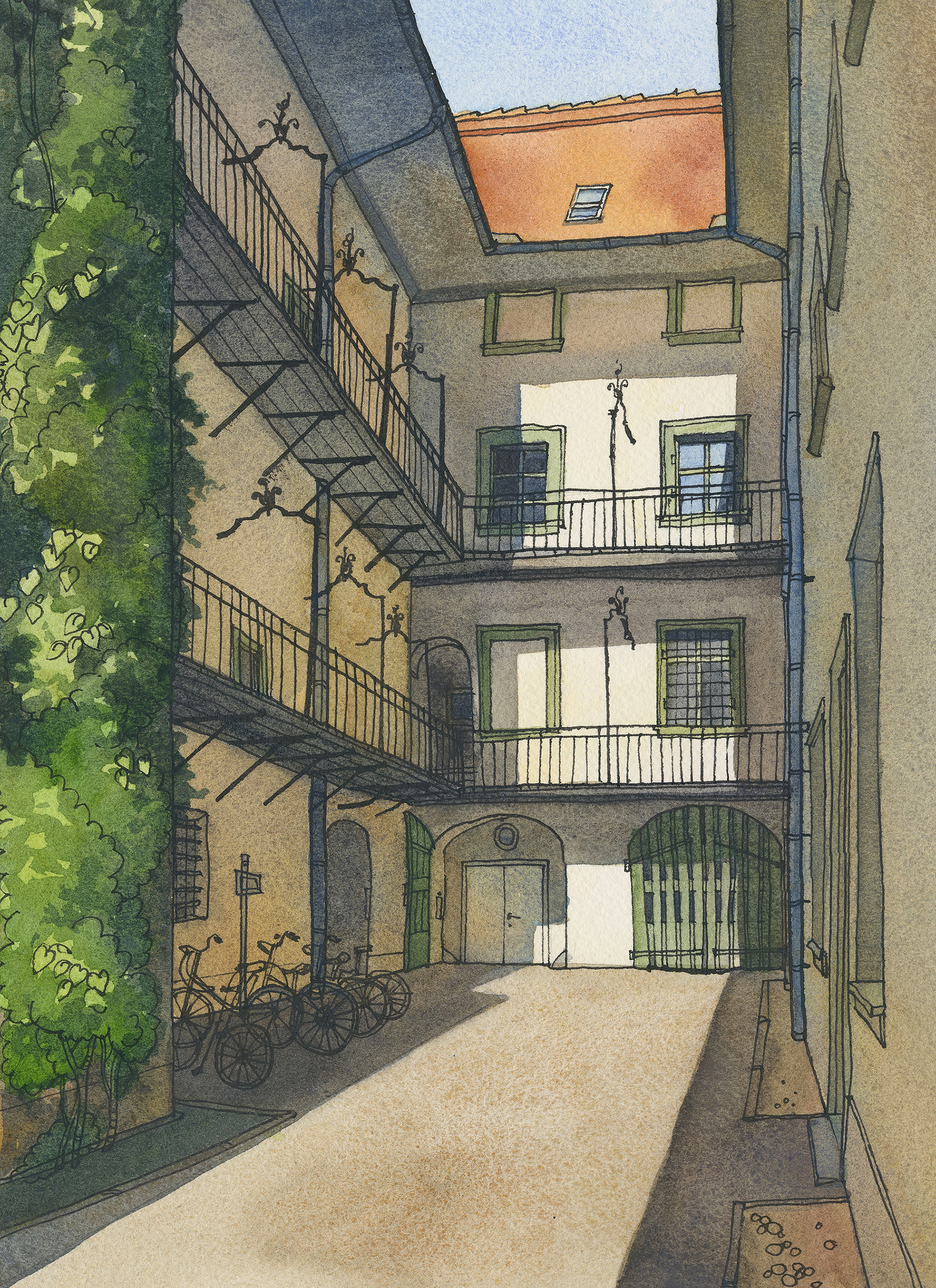 The courtyard at Sackstrasse 14 in Graz, Austria.