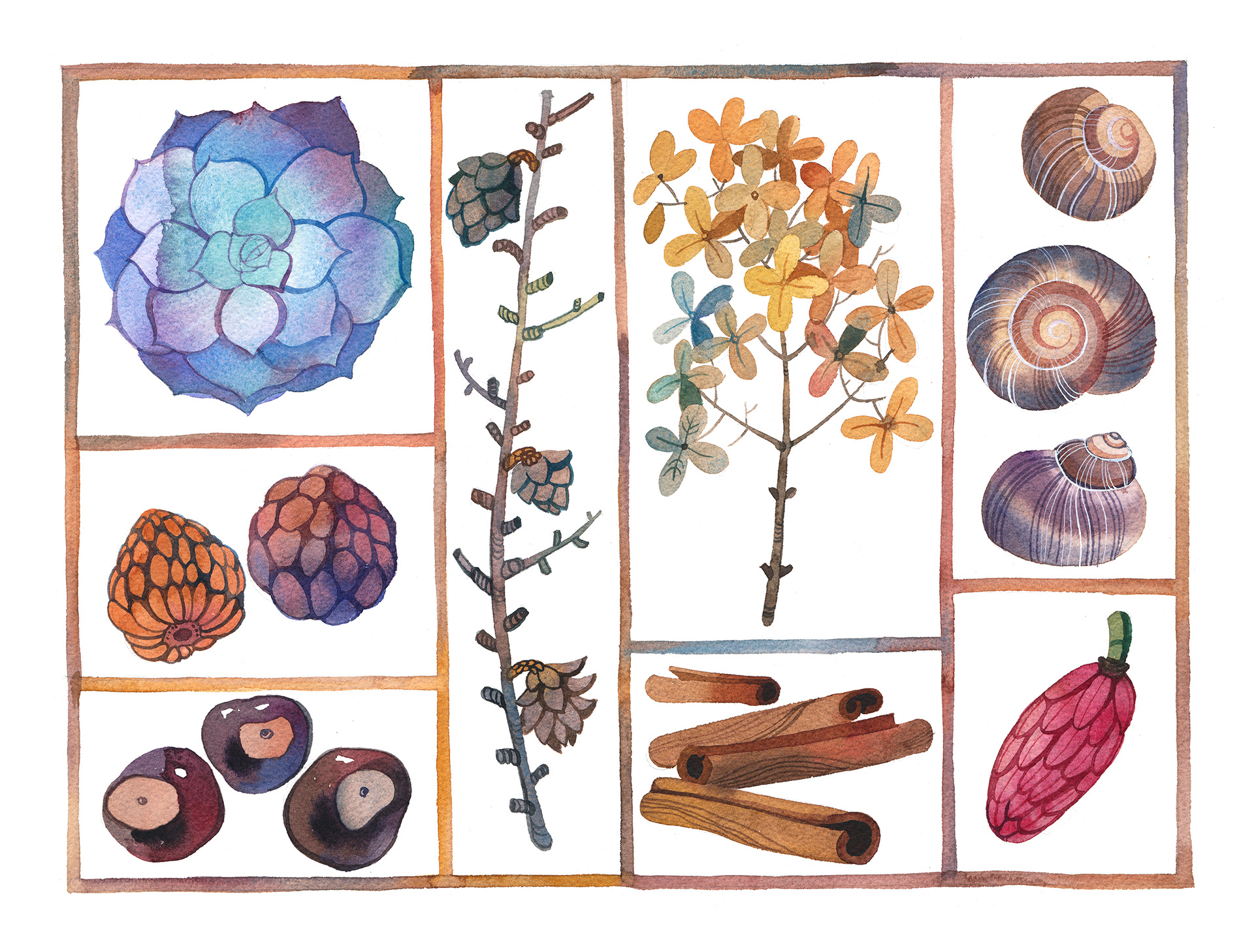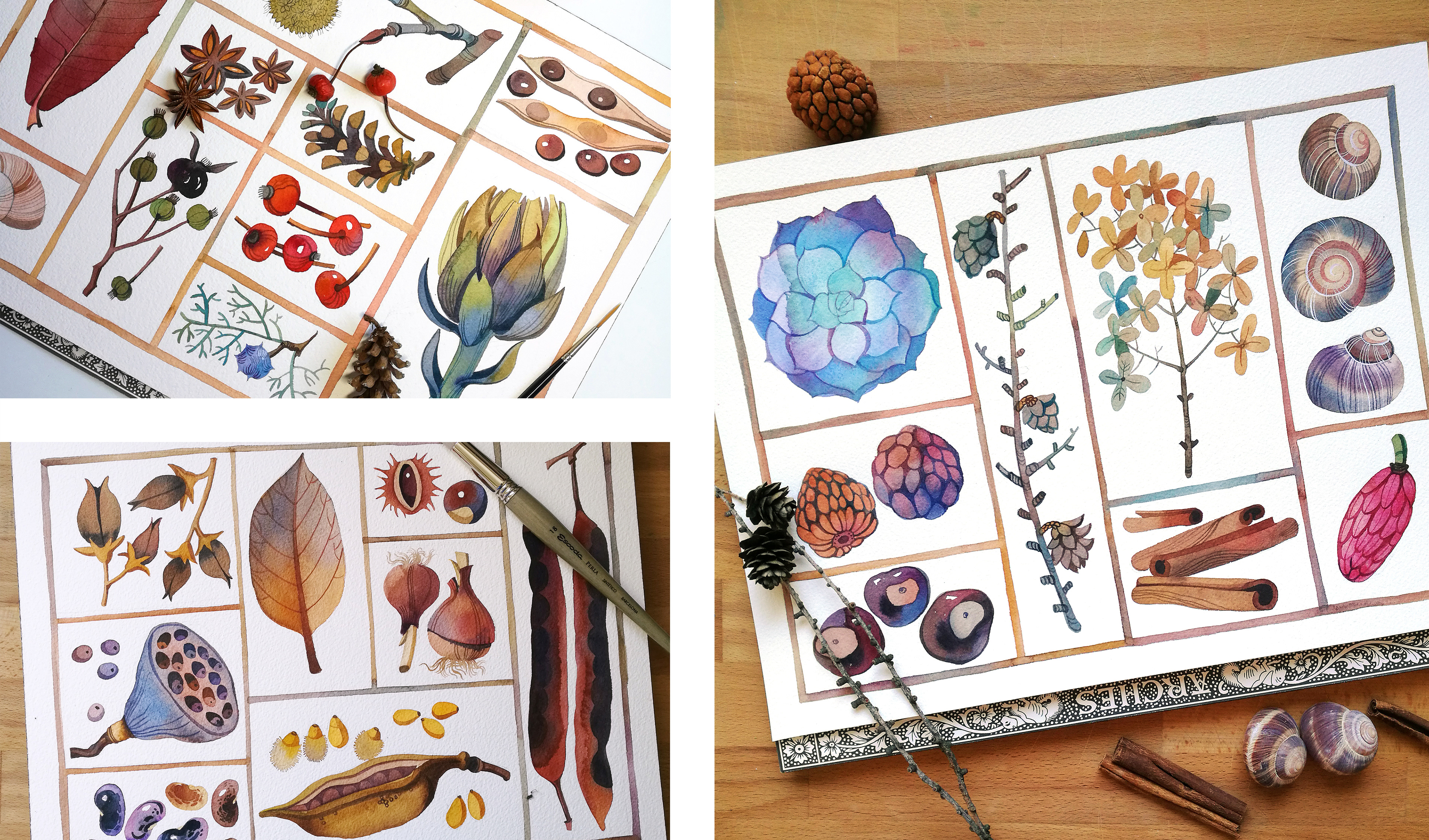 «Nature Gifts», small series of 3 watercolors, painted from life.