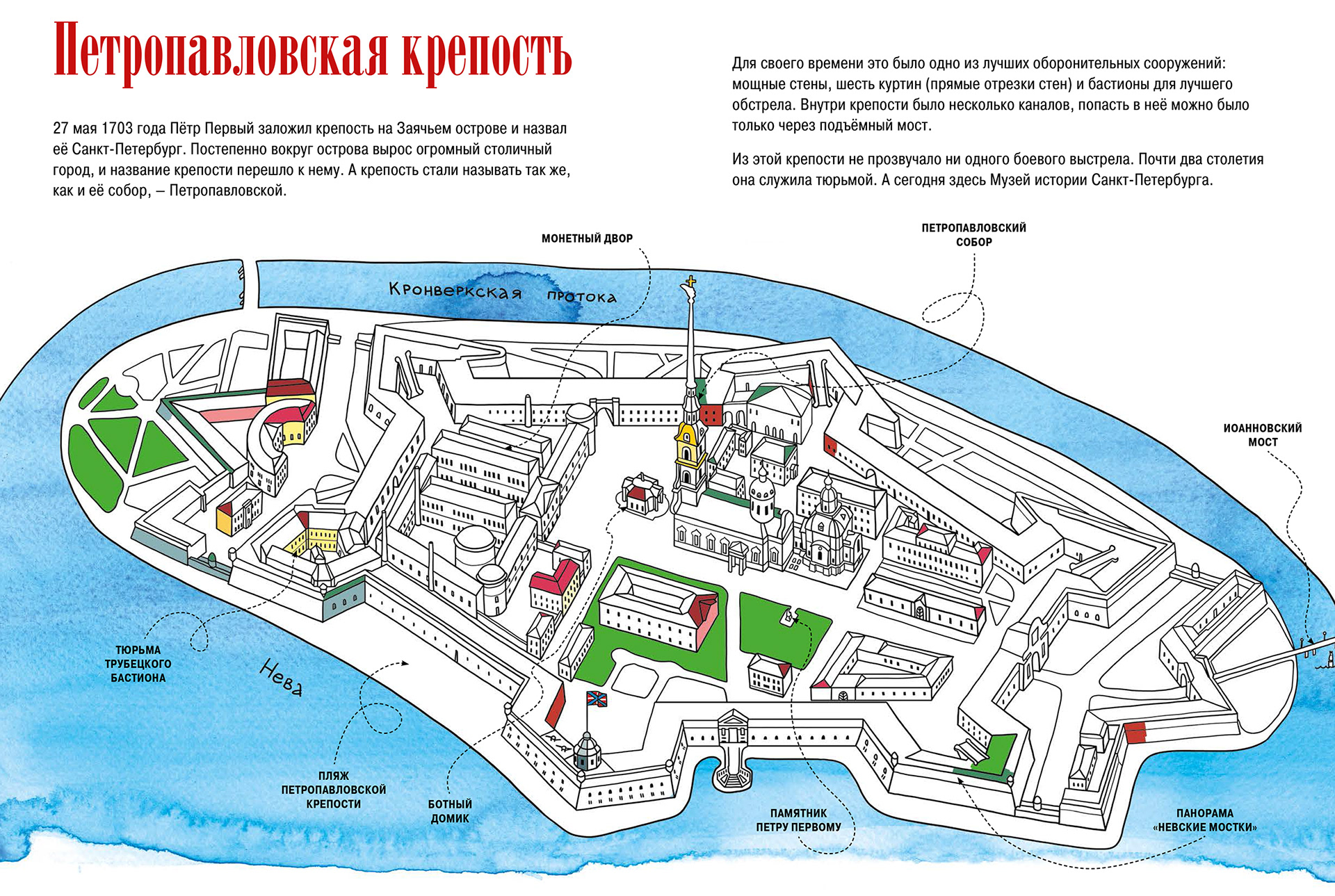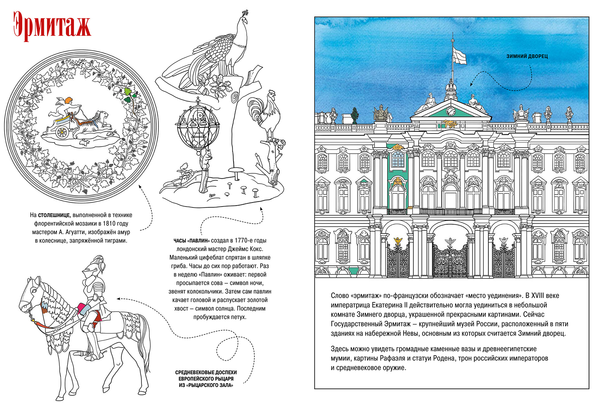 32 pages of Saint Petersburg sights for kids guide and colouring book.
