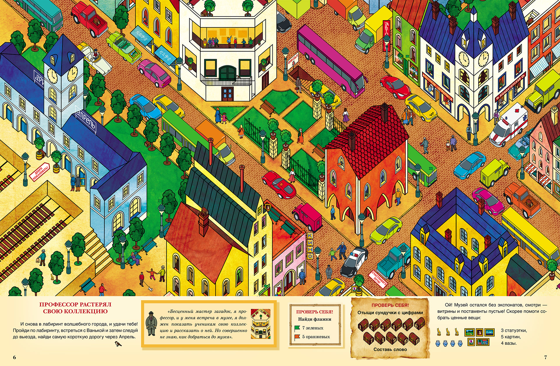 Illustrated book features 10 full-spread illustrations of magical mazes; also includes challenges, stories and answers.